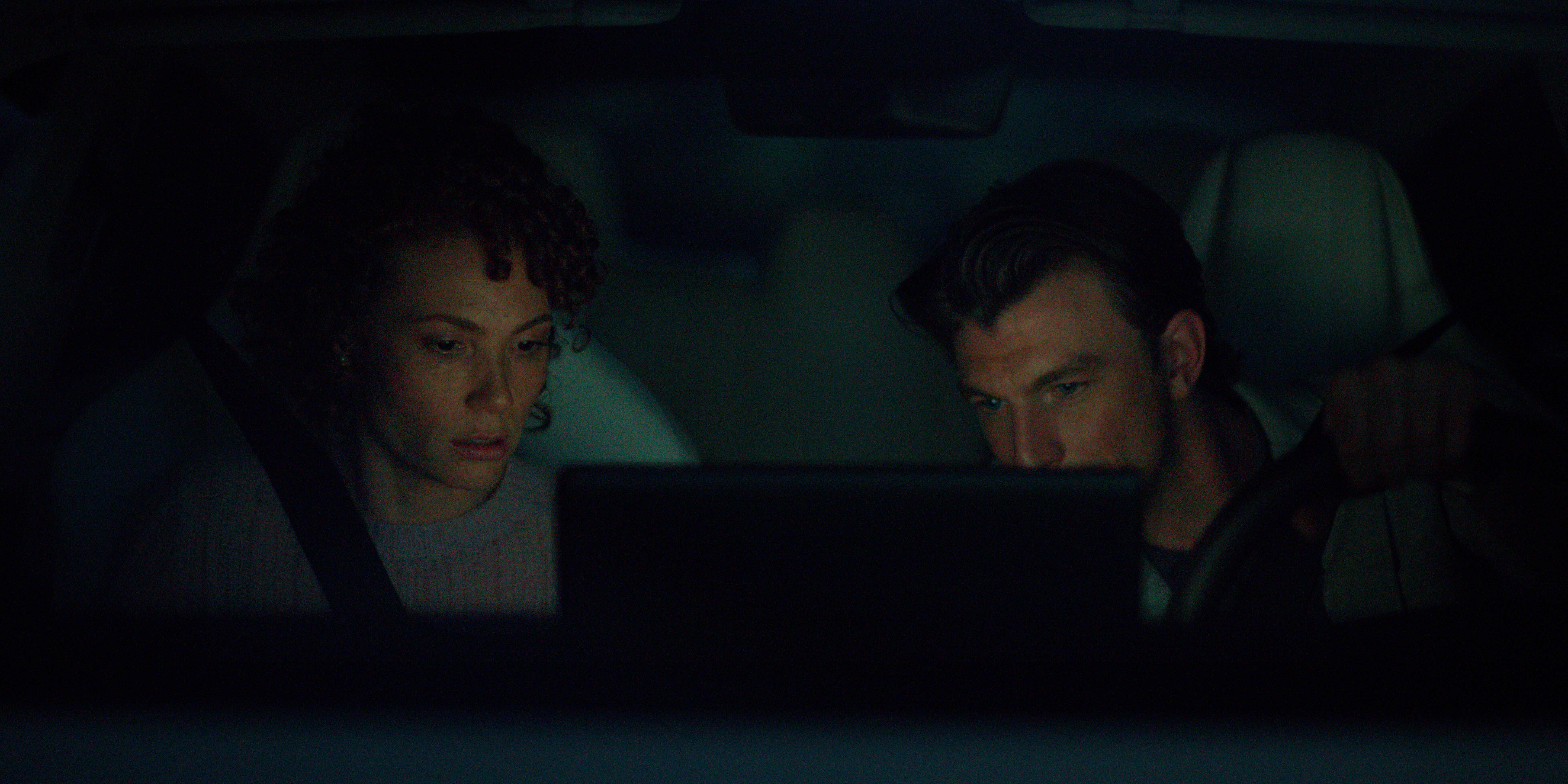 Michael: Sim-Plates already had a perfect forest plate at the driving speed we were looking for, but it was rendered for daytime. We referenced the lighting on a different plate set at night, and Alex worked with us to re-render our country road plate with the perfect lighting conditions. Our coverage is all handheld: French overs from the back seat, profiles through the driver and passenger windows, and a two shot through the windshield.